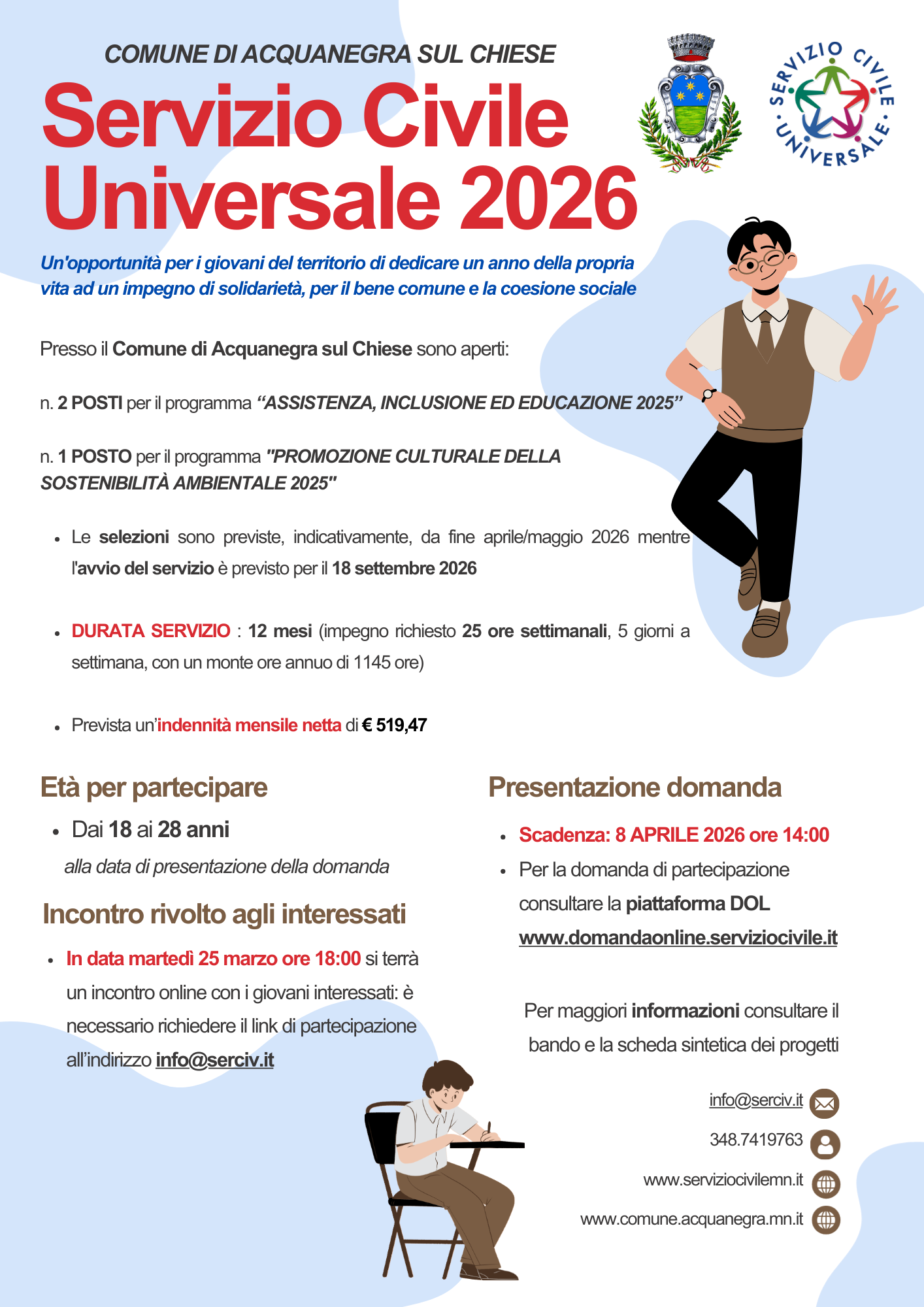 in data mercoledì 25 marzo 2026 ore 18:00 si terrà un incontro online aperto a tutti i giovani interessati organizzato da ASC Reggio Emilia: è necessario richiedere il link di partecipazione all’indirizzo info@serciv.it